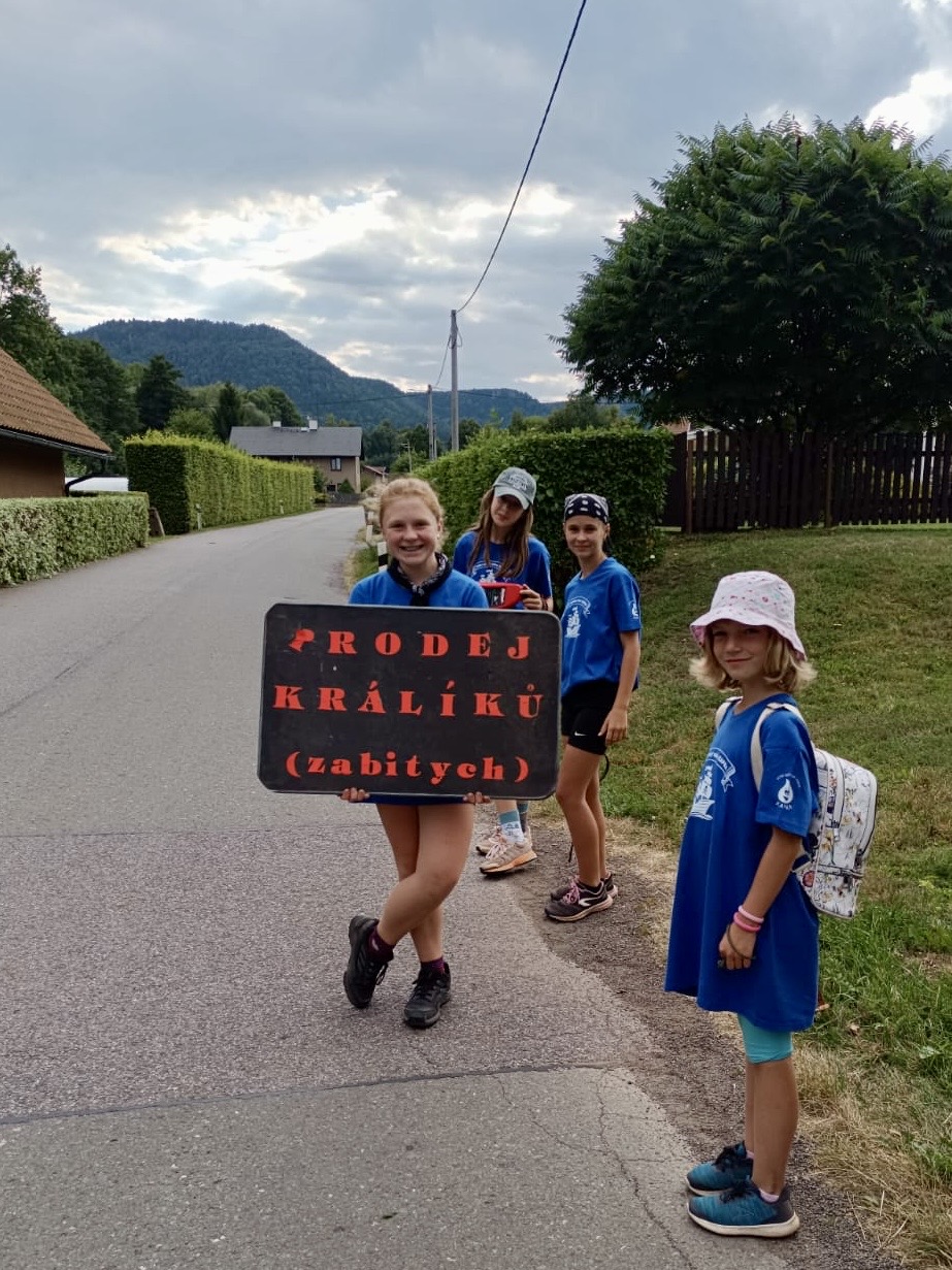 Odpoledne jsme vyrazili do nedaleké vesnice Martínkovice, kde na děti čekala obchodnická hra „Dědeček měnil, až vyměnil“. Jejich úkolem bylo začít s obyčejným pytlíkem soli 🧂 a postupně jej směnit za co nejzajímavější předměty. A nejen to – děti neměnily jen věci za věci, ale cestou také plnily dobré skutky, které vykouzlily úsměv na tvářích místních. 💛