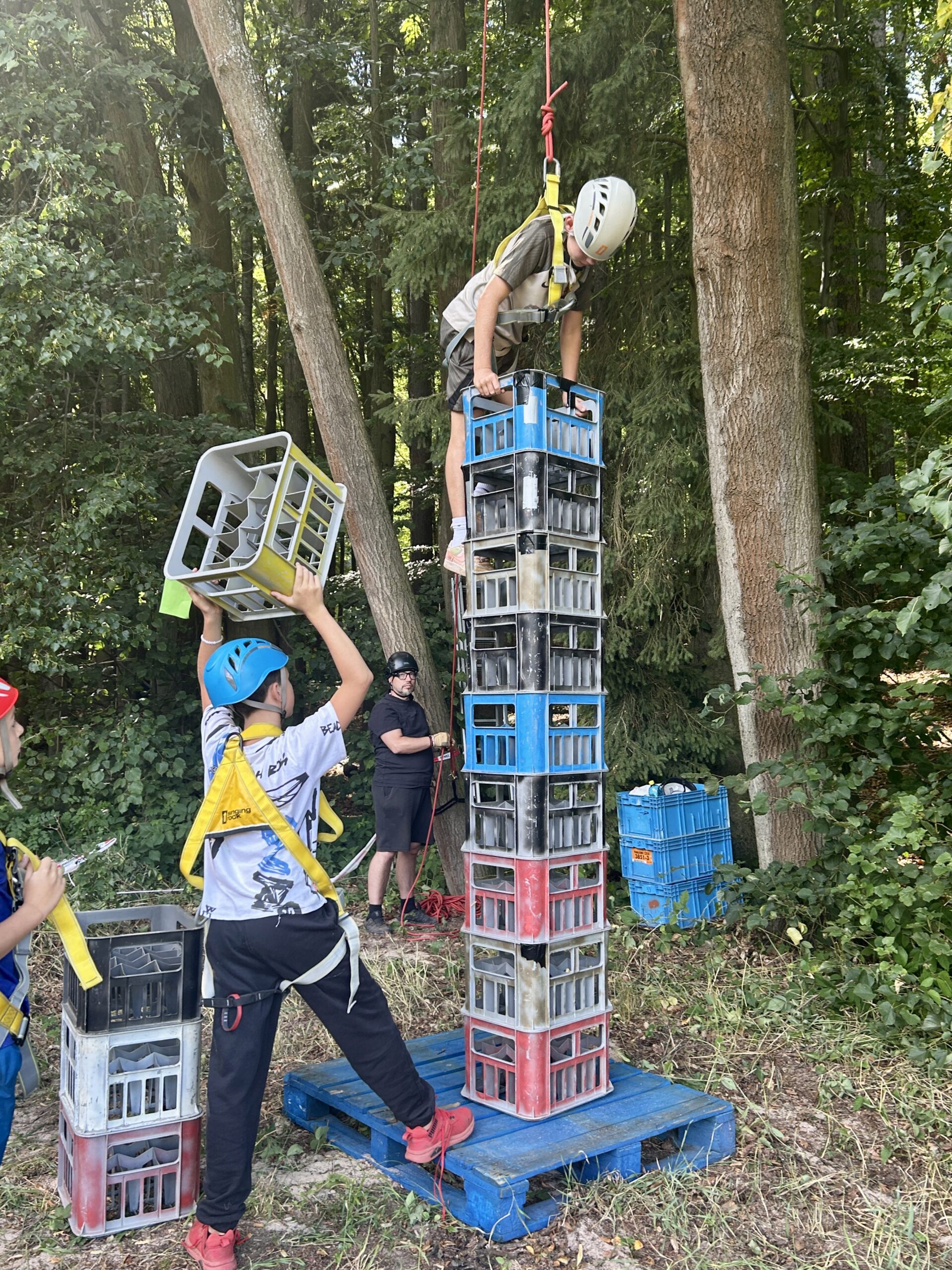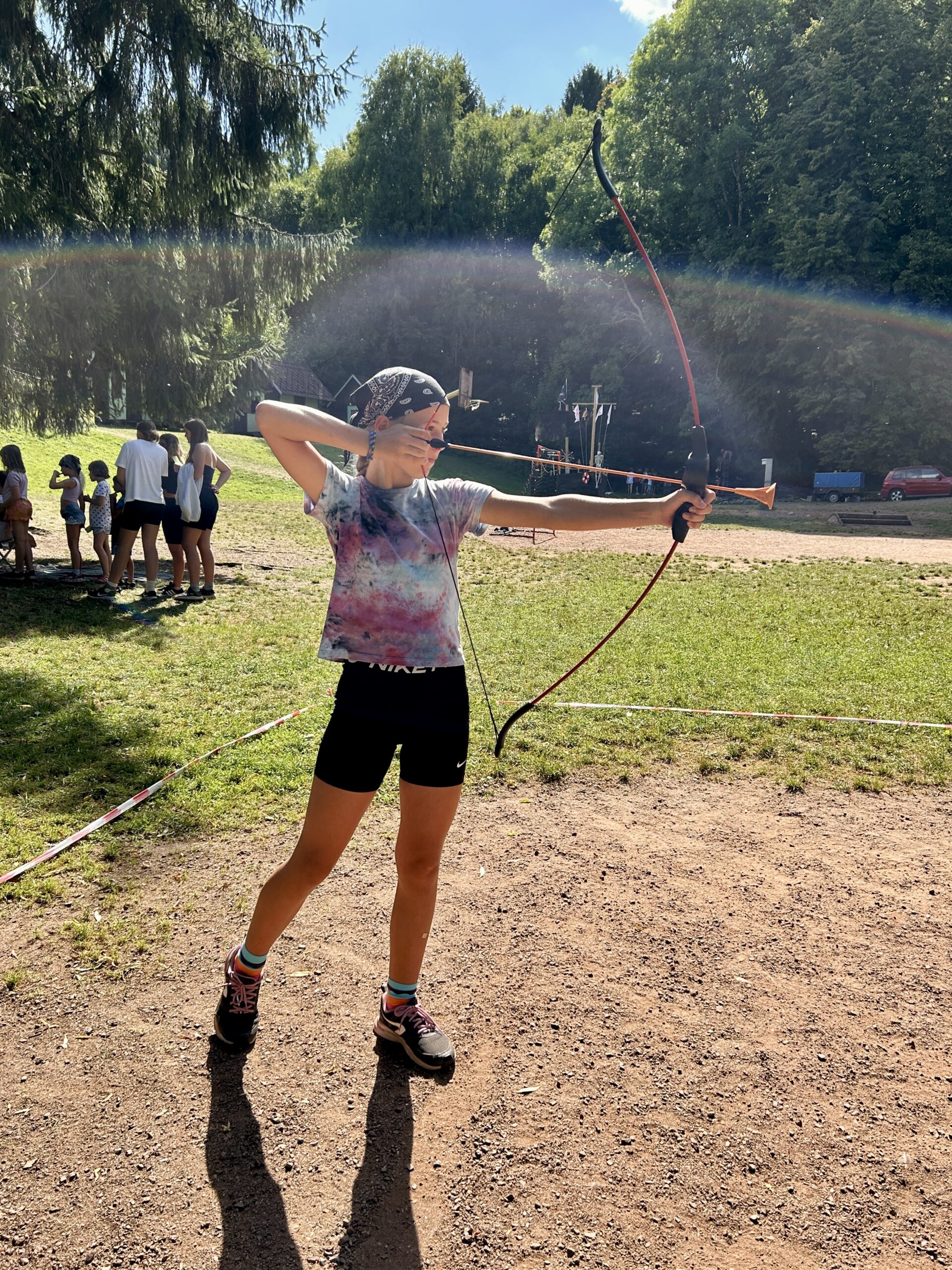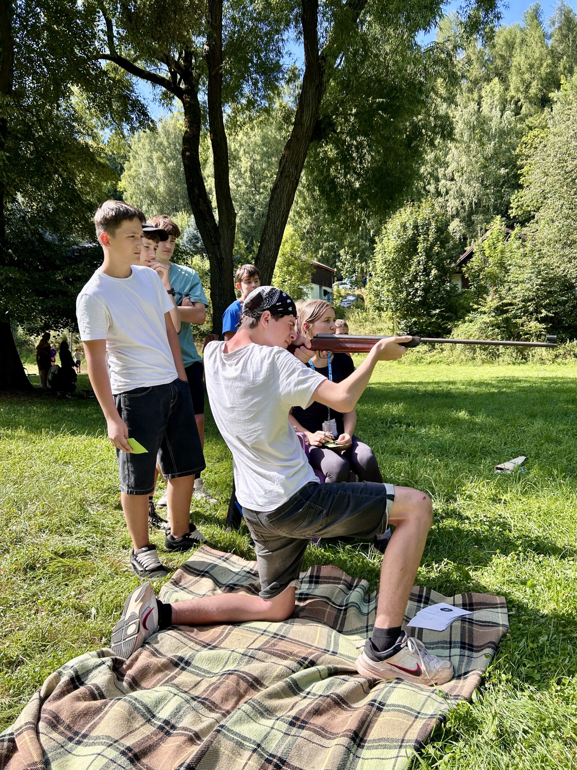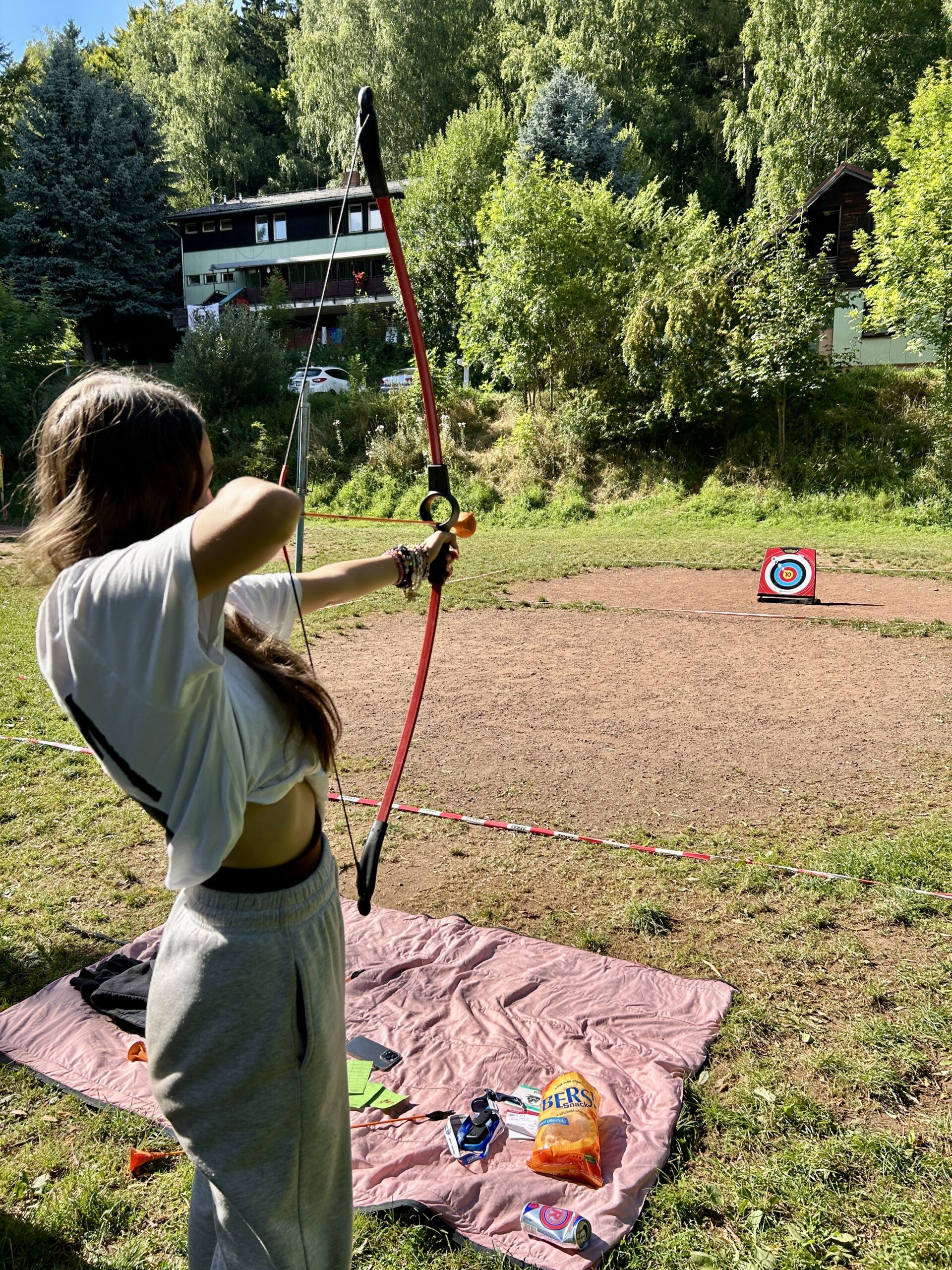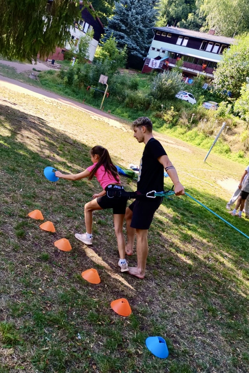 Odpoledne patřilo adrenalinu a odvaze! 🚀 Čekal nás den plný sportovních výzev, při kterých si děti mohly vyzkoušet šplhání po krabicích 🧱🧗, střelbu ze vzduchovky 🎯, střelbu z luku 🏹, jízdu na gumolanu, vrh nožem 🔪 a mnoho dalších aktivit, které prověřily jejich odvahu, obratnost i sílu.