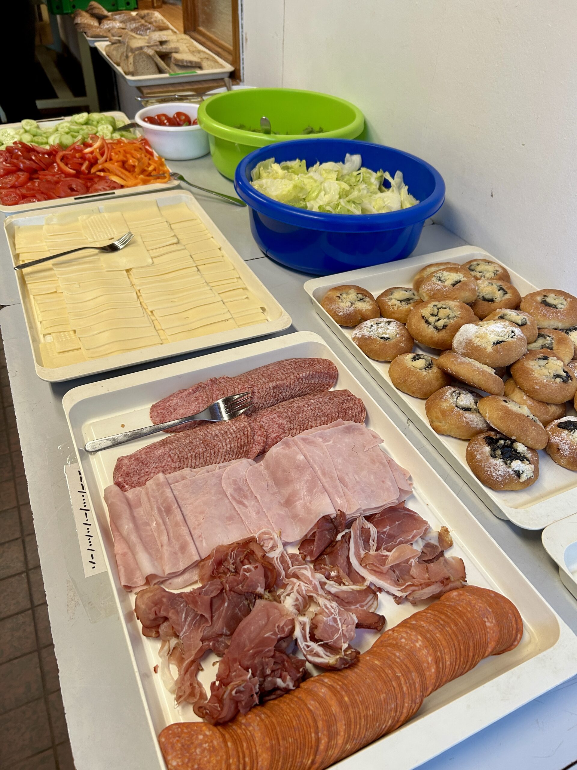 Večer nás čekal bohatý studený raut 🍇🥗, kde si každý doplnil síly podle své chuti.