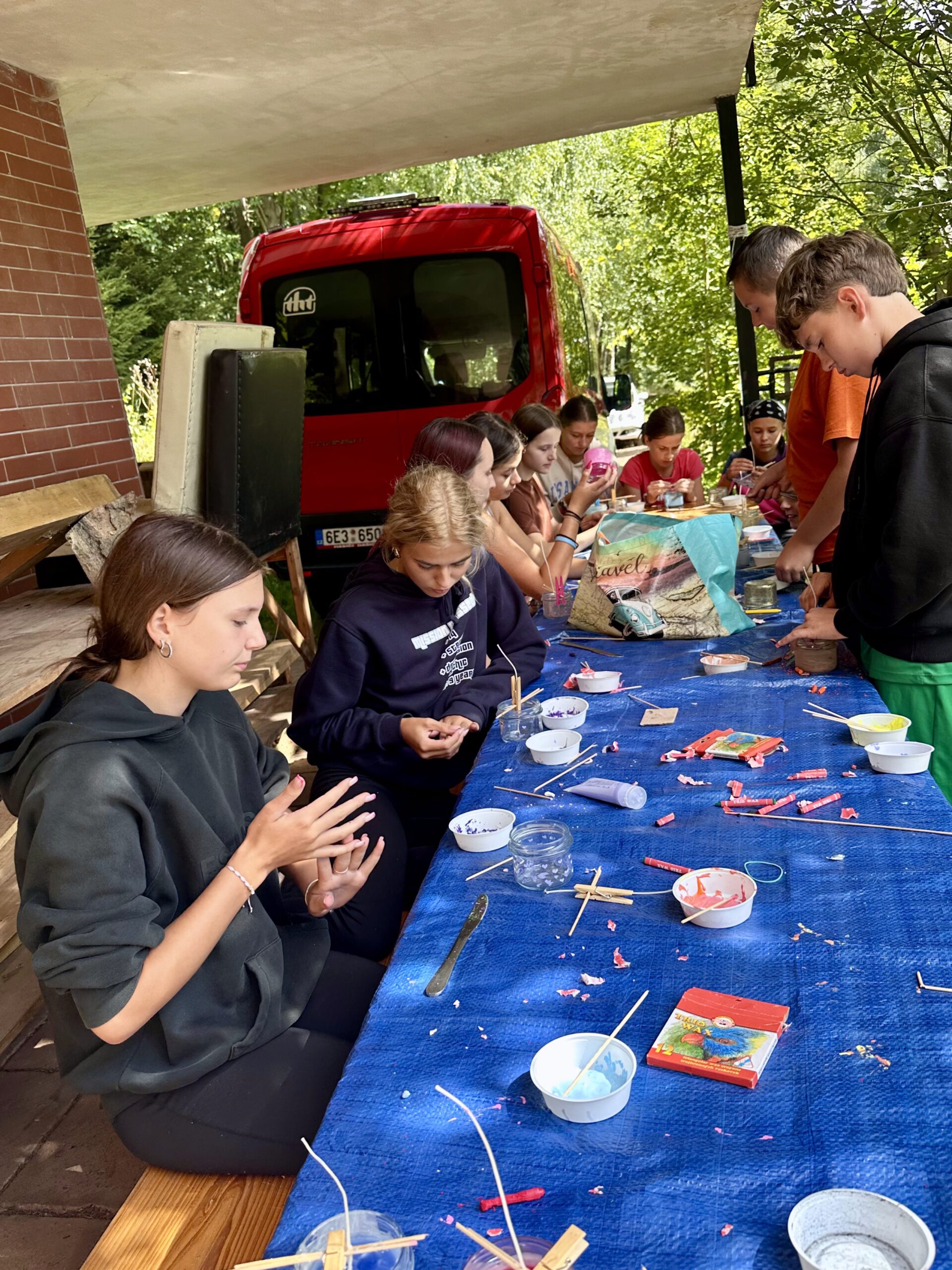 Dopoledne čekaly děti nové činnosti – naučily se veselé táborové tance 💃🕺 a také si vlastnoručně vyrobily svíčky, které jim budou připomínat pirátské dobrodružství. 🕯️✨