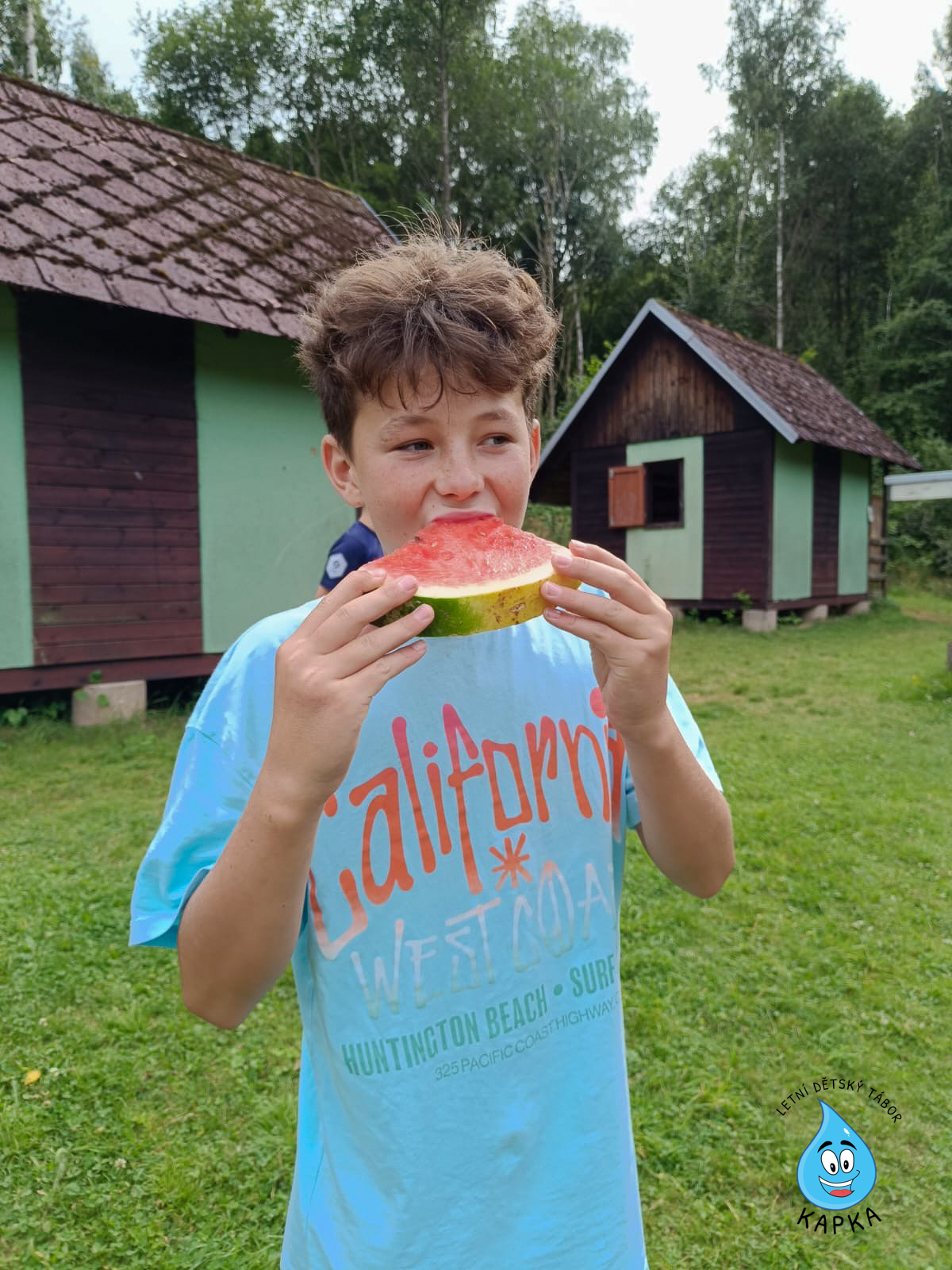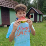 Naše posádka dnes dorazila bezpečně do přístavu – tedy do tábora – kde je hned u brány přivítalo osvěžující melounové občerstvení. 🍉 Po ubytování a seznámení s prozatímními oddíly jsme všichni vyrazili na chutný raut. 🍽️
